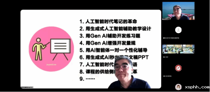 焦建利从自创互动工具“课堂有点酷”的使用方法及功能入手,引导参会教师更好的利用网络平台进行讨论与互动。带领参会教师回顾上期活动的培训内容,对生成式人工智能赋能教师的五种路径进行重温,引出本次培训中利用生成式人工智能高效备课的八个案例及场景,包括“人工智能时代笔记本的革命、用生成式人工智能辅助教学设计、用GenAI辅助开发练习题、用GenAI增强开发量规、用AI智能体一对一智能化辅导、用生成式AI秒出演示文稿、人工智能时代的期末评语、课程的供给侧结构性改革”。焦建利对suno、豆包、通义千问、ChatPPT等工具的应用进行了详细的讲解及示范。最后,理论讲解结束后焦建利通过互动工具“课堂有点酷”中的“小纸条”对参会教师的提问进行回应,化解教师在智能工具使用中的担忧,并推荐实用性工具。