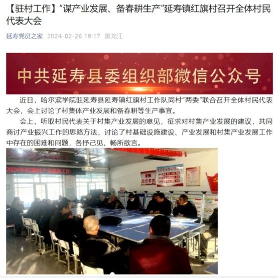 媒体聚焦 首页 - 媒体聚焦 - 正文 延寿县官媒《延寿党员之家》报道我校驻村帮扶工作 浏览量:时间:2024-03-11 近日,我校驻延寿县延寿镇红旗村工作队同村“两委”联合召开全体村民代表大会,讨论村集体产业发展和备春耕生产等事宜。会议听取村民代表关于村集产业发展的意见,征求对村集产业发展的建议,共同商讨产业振兴工作的思路方法。延寿县官方媒体《延寿党员之家》对此进行了报道,这是延寿县官媒对我校驻村工作的第二次报道。 原文链接:延寿党员之家:https://mp.weixin.qq.com/s/QkfmKlDV8UJxcewNgAEpXw