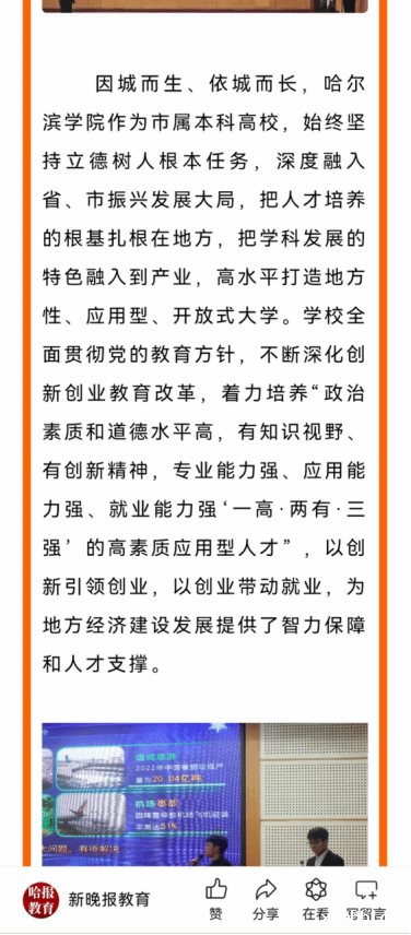 报道指出:因城而生、依城而长,xsphh作为市属本科高校,始终坚持立德树人根本任务,深度融入省、市振兴发展大局,把人才培养的根基扎根在地方,把学科发展的特色融入到产业,高水平打造地方性、应用型、开放式大学。学校全面贯彻党的教育方针,不断深化创新创业教育改革,着力培养“政治素质和道德水平高,有知识视野、有创新精神,专业能力强、应用能力强、就业能力强‘一高·两有·三强’的高素质应用型人才”,以创新引领创业,以创业带动就业,为地方经济建设发展提供了智力保障和人才支撑。